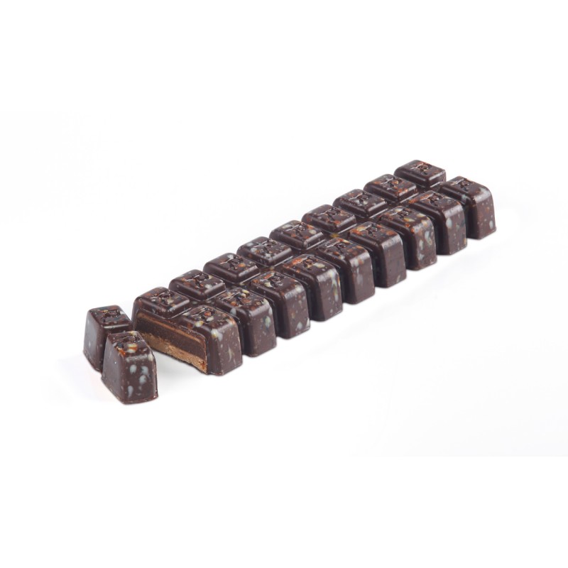 Inspirado en el postre "Anarkia" de Jordi Roca, este turrón conjuga todos los sabores del postre en un solo bocado. Elaborado con una ganache de cacao con trozos de cacao puro caramelizado, con una gelatina de chocolate en el interior y una gianduia crujiente de avellana, caramelo efervescente y barquillos.