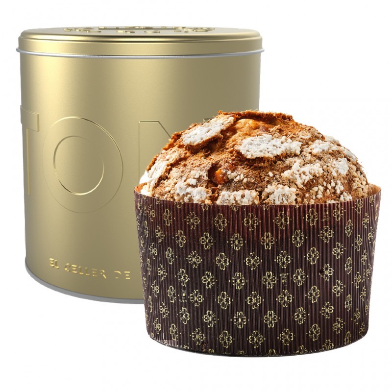 Un producto ya clásico de la Navidad en El Celler de Can Roca. Elaborado con mase madre fermentada lentamente durante 48 horas, y chocolate de Casa Cacao, gianduja de chocolate con leche y albaricoque confitado. Un panettone húmedo, aireado y con su característico sabor a Navidad.