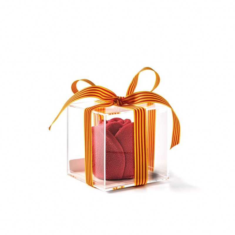 Pastel elaborado con bizcocho de almendra, recubierto con crema de chocolate y aroma de rosas. Contiene en el centro de la pieza un caramelo blando con agua de rosas.