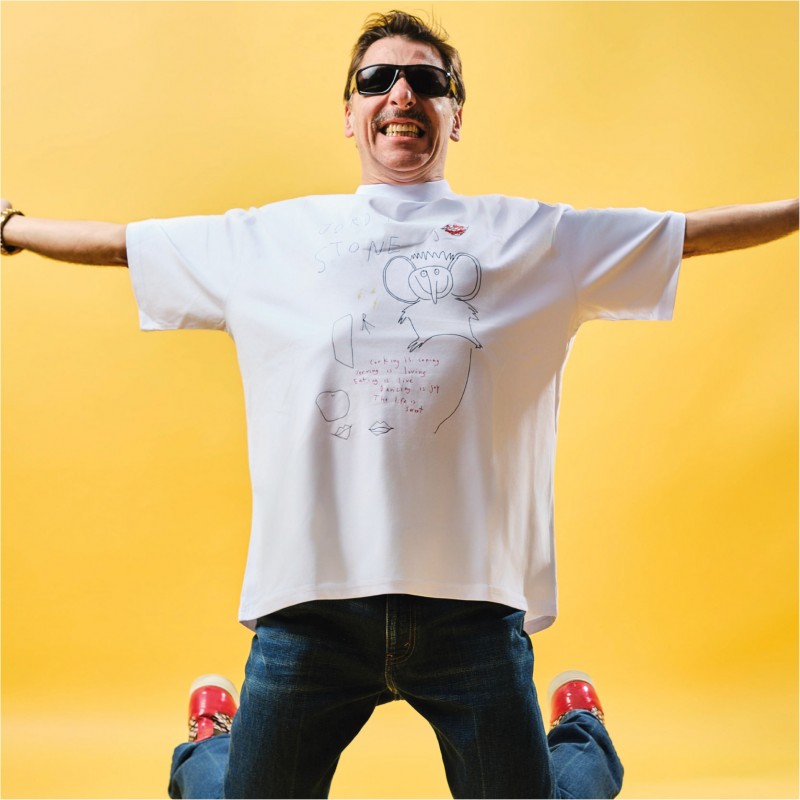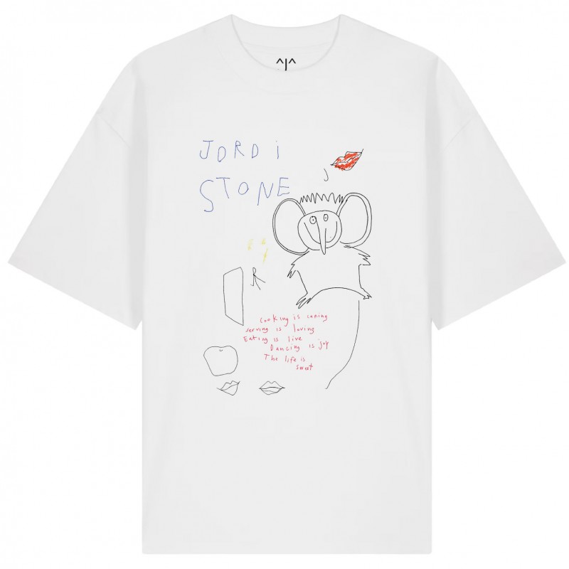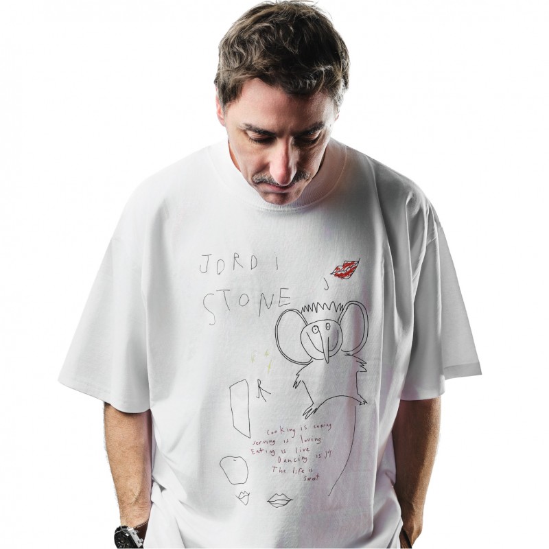 T-shirt “Cooking is Caring” – Blanc. Merchandising officiel de Jordi Stone.